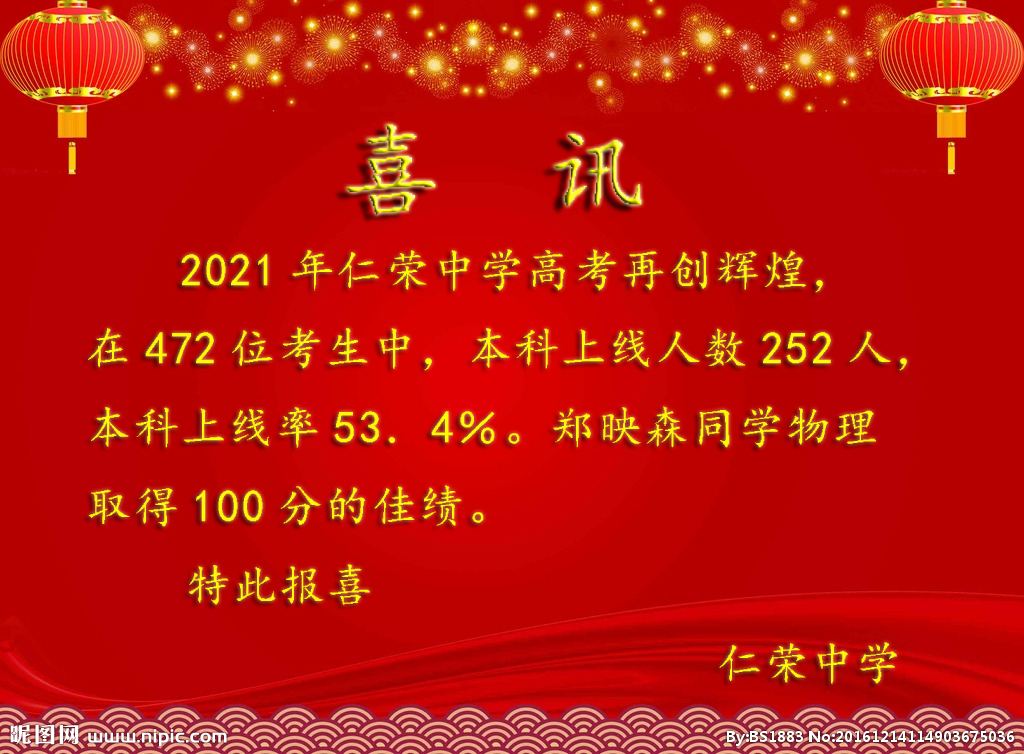 汕尾市海豐縣仁榮中學是由汕尾市海豐縣仁榮實業(yè)發(fā)展有限公司本著回報社會的宗旨,以高投入、低收費為辦學思想,于1999年秋季經(jīng)汕尾市教育局批準創(chuàng)辦的全日制完全中學。學校占地面積76000平方米,建筑面積62000平方米,投入資金1.5億元。校園美麗幽雅,綠樹成蔭,鮮花盛開,荔果飄香。目前有初、高中60個教學班,在校學生近2700人,教職工260多名。